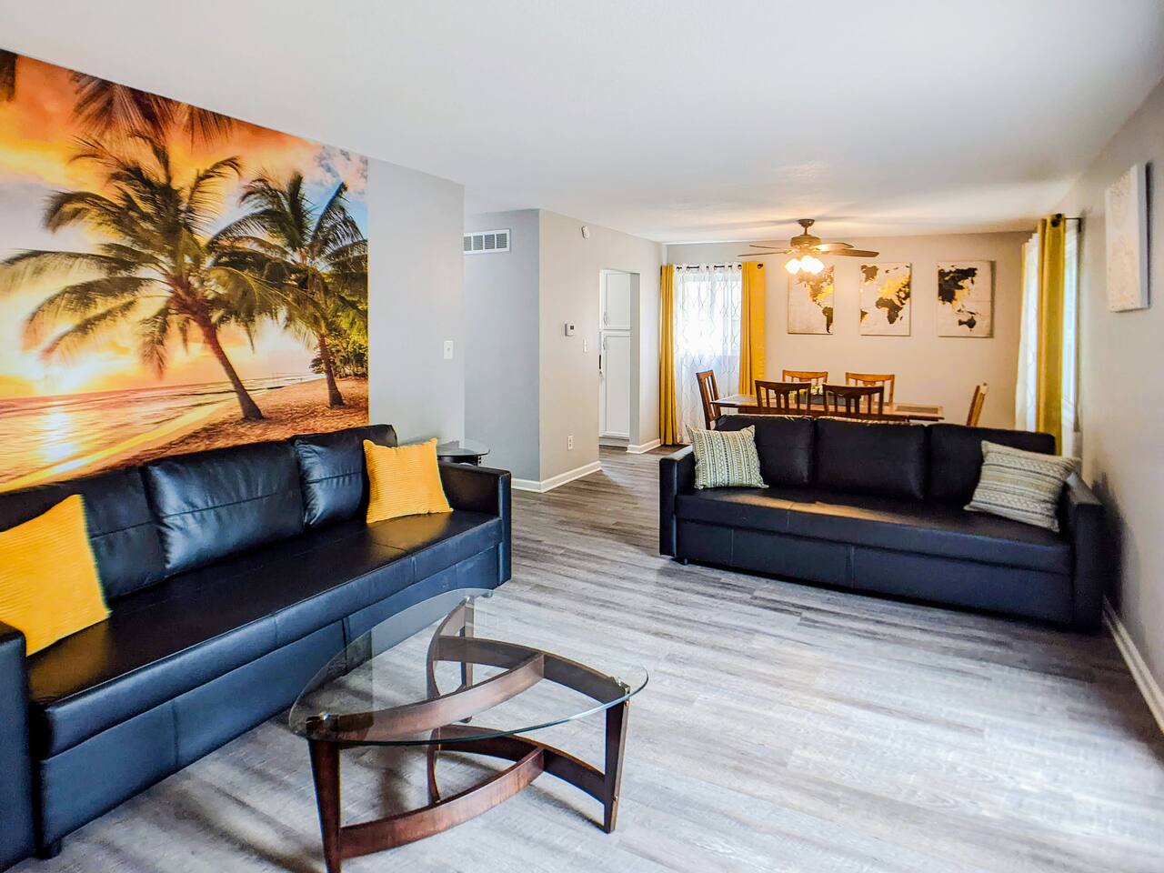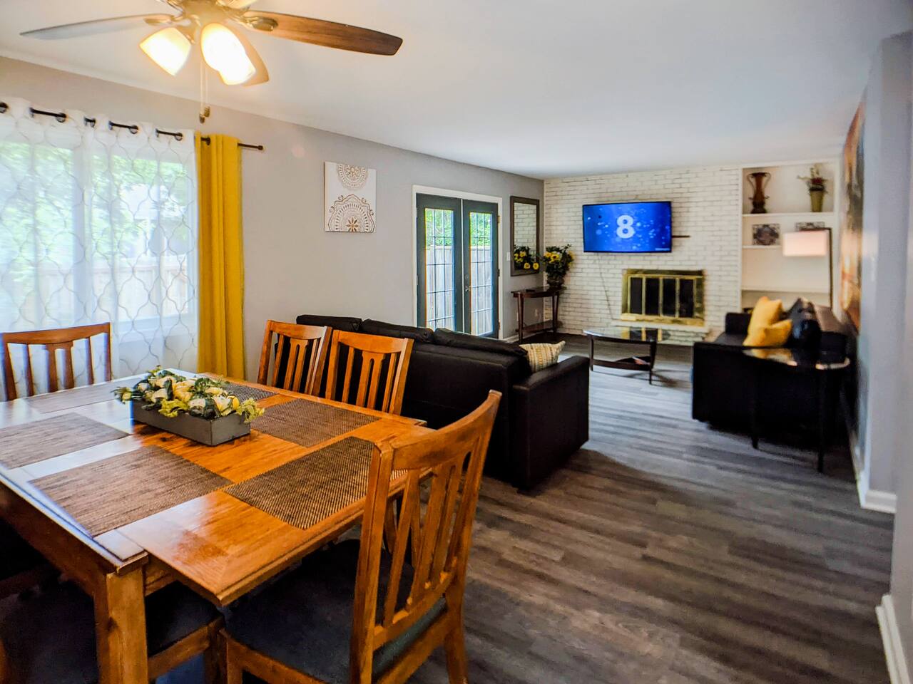 Beautiful 3 bedrooms/2.5 baths duplex offer everything you need to comfortably stay just for a few nights or for an extended stay. Nicely decorated the house has new comfy mattresses, comforters, pillows and freshly laundered bed linens and towels. This duplex is located in quiet neighborhood and conveniently close to Oak Park Mall, popular restaurants, offices etc. Easy access to highways. Large groups can book up to six 3/2 units conveniently located on the same street in the close proximity