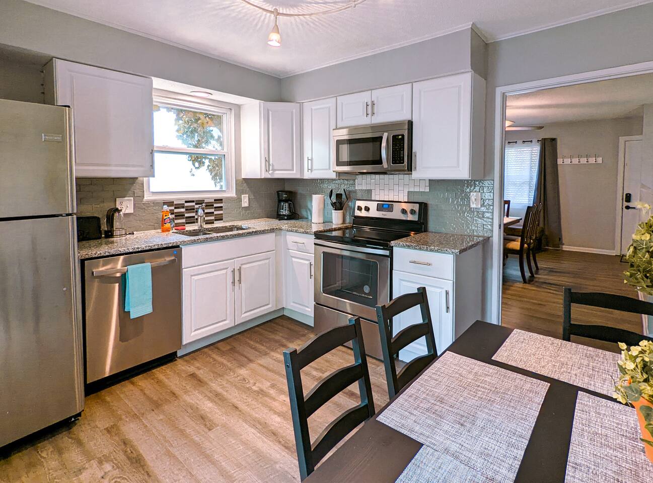 Beautiful 3 bedrooms/2 baths duplex offer everything you need to comfortably stay just for a few nights or for an extended stay. Nicely decorated the house has new comfy mattresses, comforters, pillows and freshly laundered bed linens and towels. This duplex is located in quiet neighborhood and conveniently close to Oak Park Mall, popular restaurants, offices etc. Easy access to highways. Large groups can book up to six 3/2 units conveniently located on the same street in the close proximity