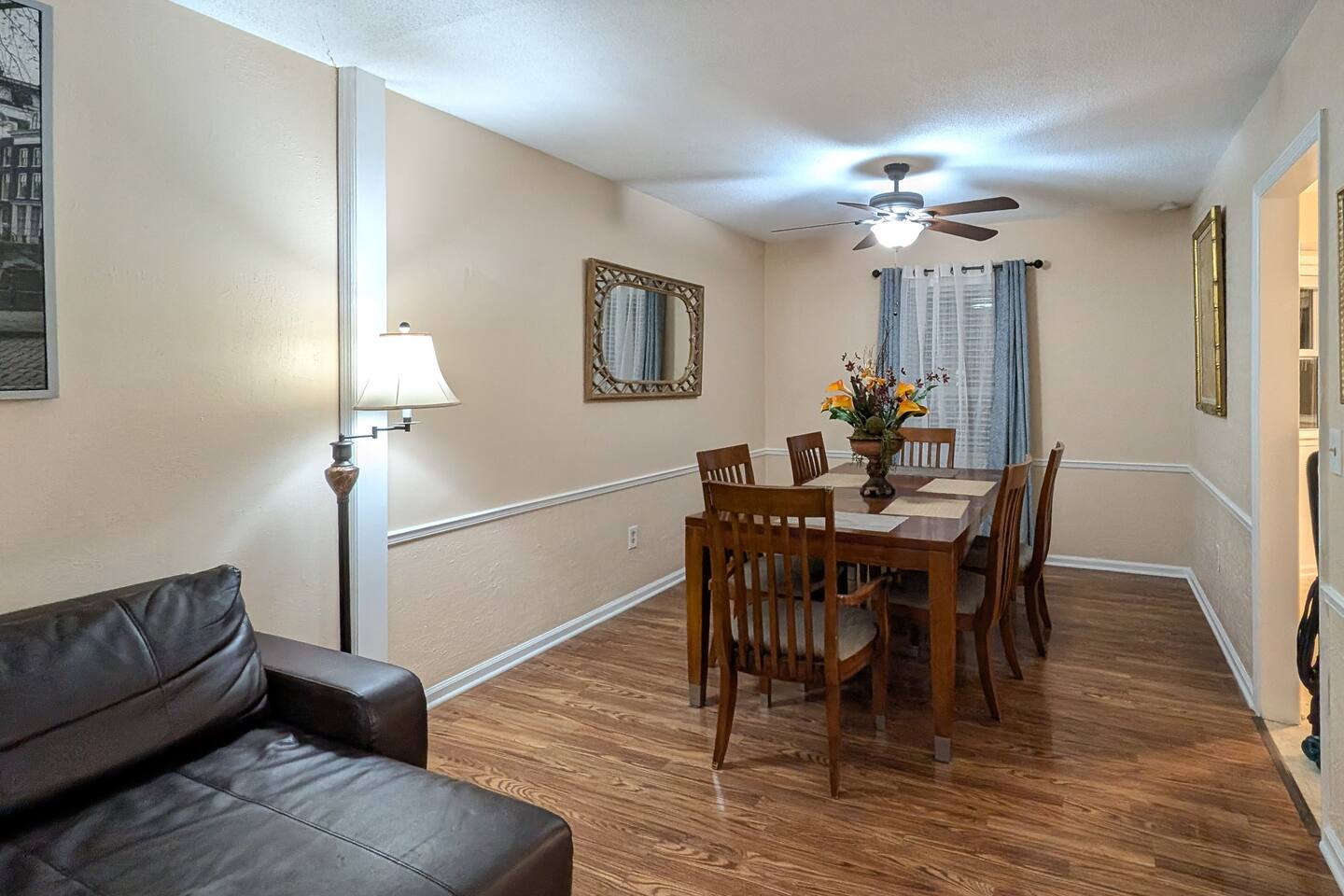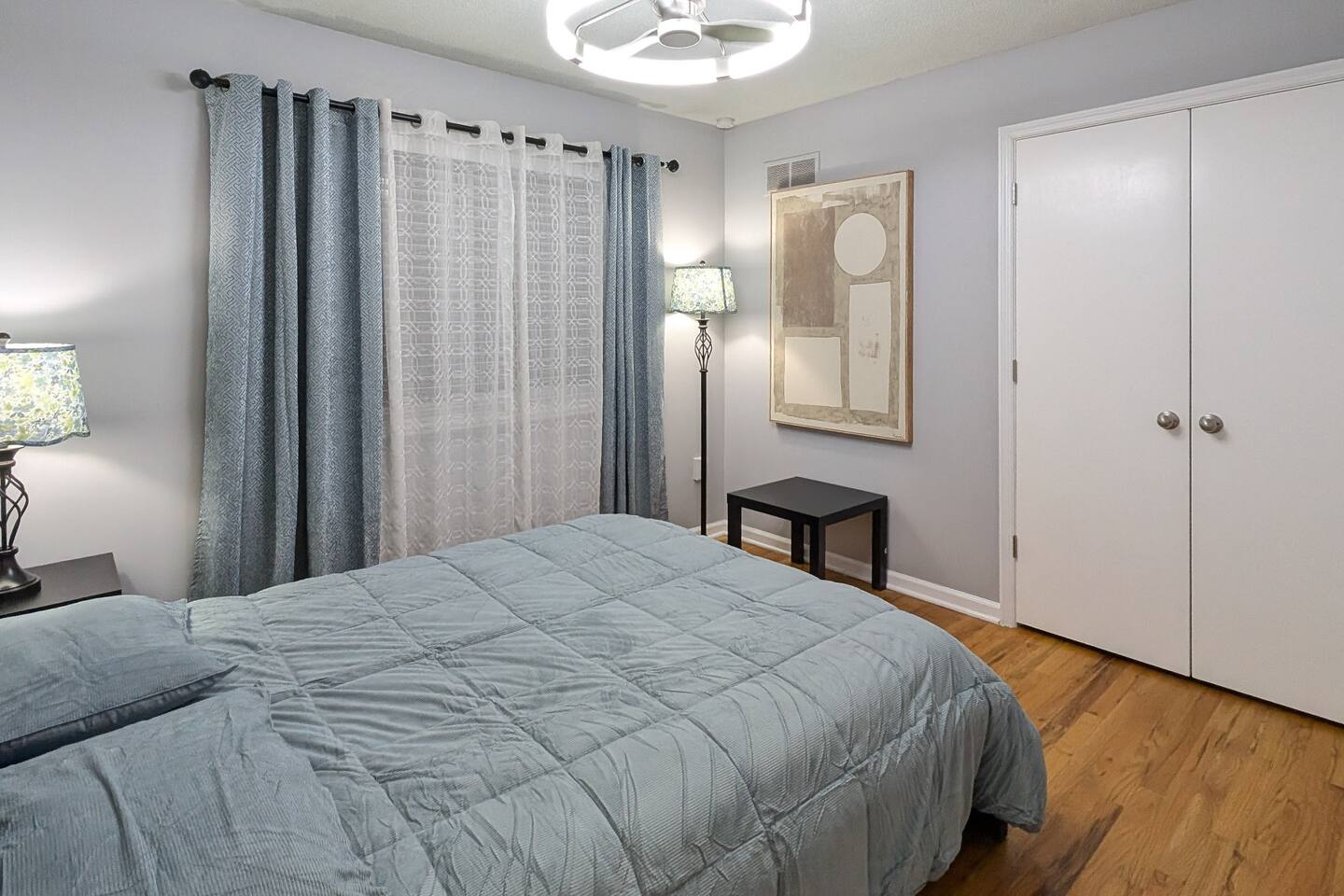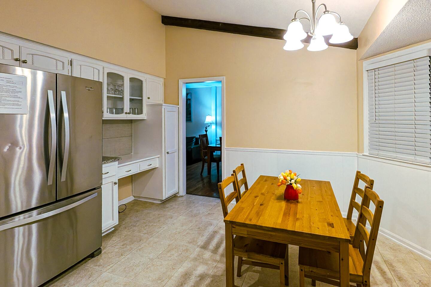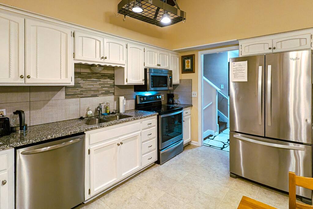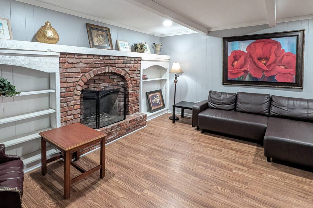 We've taken extra care with the small details so your stay is convenient, relaxing & special. Our 1600 sq.ft single family house features 4 Bedrooms and 2.5 Bathrooms, two car garage and a fenced in backyard. Bedrooms: - 2 King Beds - 2 Queen Beds - 3 sofa beds Bathrooms - Full bathroom with shower in the hall - Second Bathroom off the Master bedroom - Half-bathroom downstairs next to the laundry room Kitchen - Furnished kitchen - Basic cooking kitchenware/ plates/ cups/ utensils/ etc. - Fridge - Microwave - Dishwasher Parking - Two-car garage (open/close from inside) - Secure driveway - Super fast fiber Internet (1G download/upload) - Smart TVs with your favorite streaming channels Other details - In-house Laundry (Washer & Dryer)