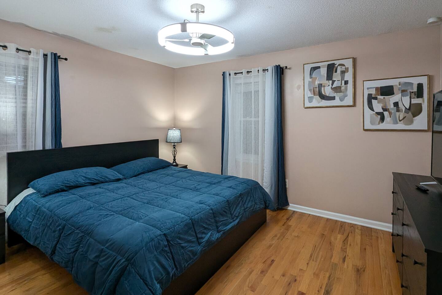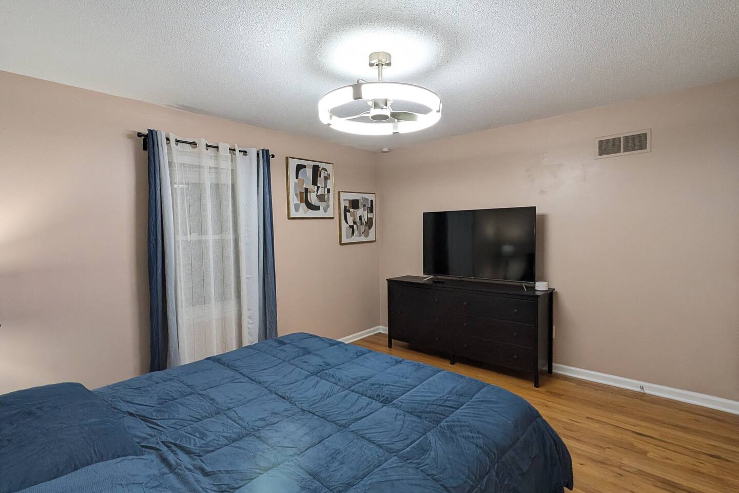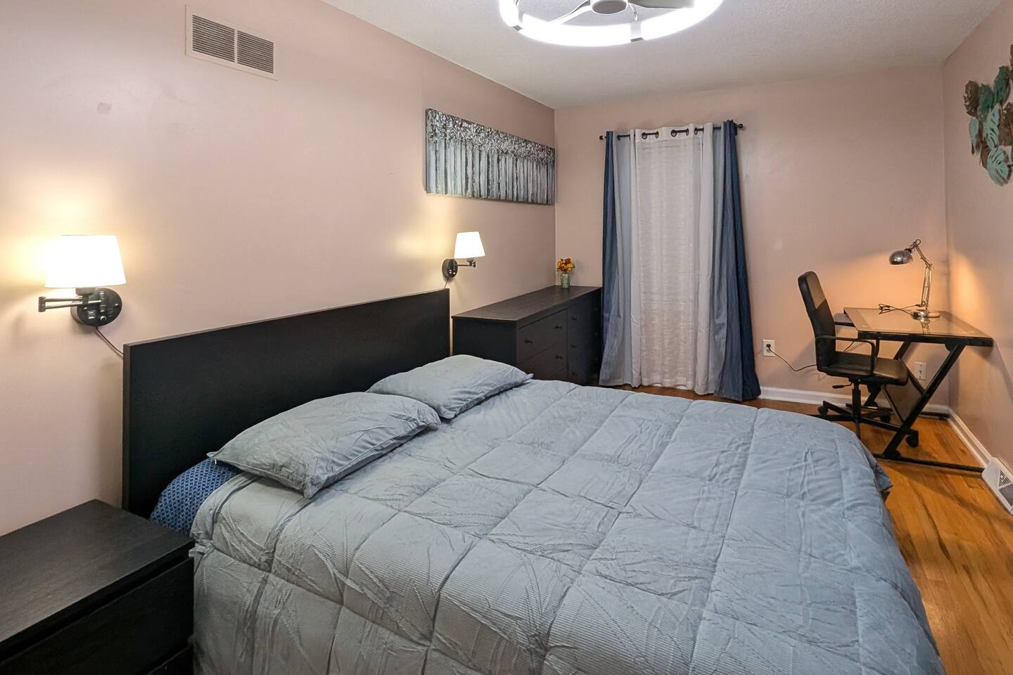 We've taken extra care with the small details so your stay is convenient, relaxing & special. Our 1600 sq.ft single family house features 4 Bedrooms and 2.5 Bathrooms, two car garage and a fenced in backyard. Bedrooms: - 2 King Beds - 2 Queen Beds - 3 sofa beds Bathrooms - Full bathroom with shower in the hall - Second Bathroom off the Master bedroom - Half-bathroom downstairs next to the laundry room Kitchen - Furnished kitchen - Basic cooking kitchenware/ plates/ cups/ utensils/ etc. - Fridge - Microwave - Dishwasher Parking - Two-car garage (open/close from inside) - Secure driveway - Super fast fiber Internet (1G download/upload) - Smart TVs with your favorite streaming channels Other details - In-house Laundry (Washer & Dryer)