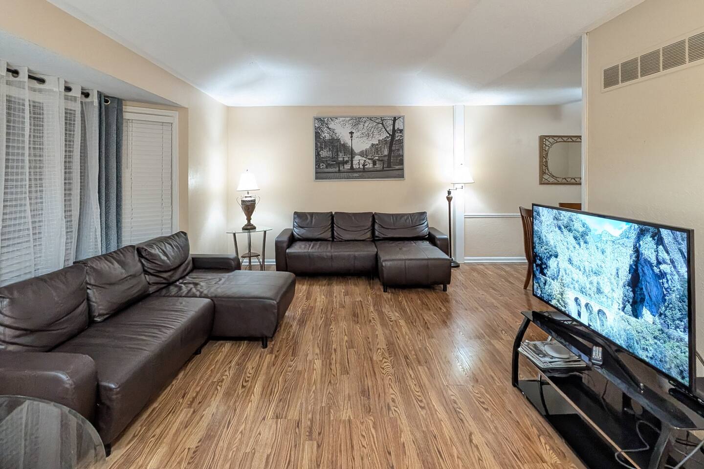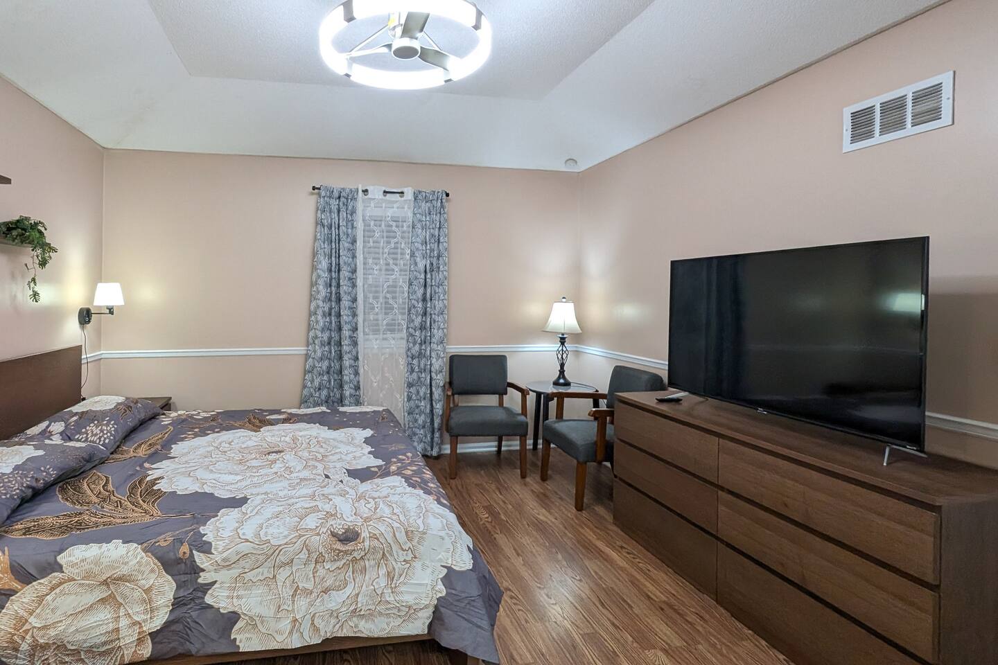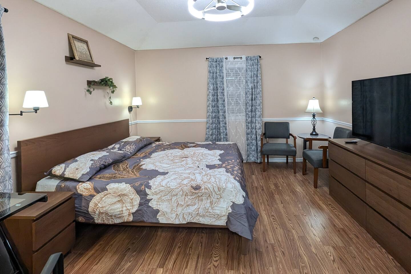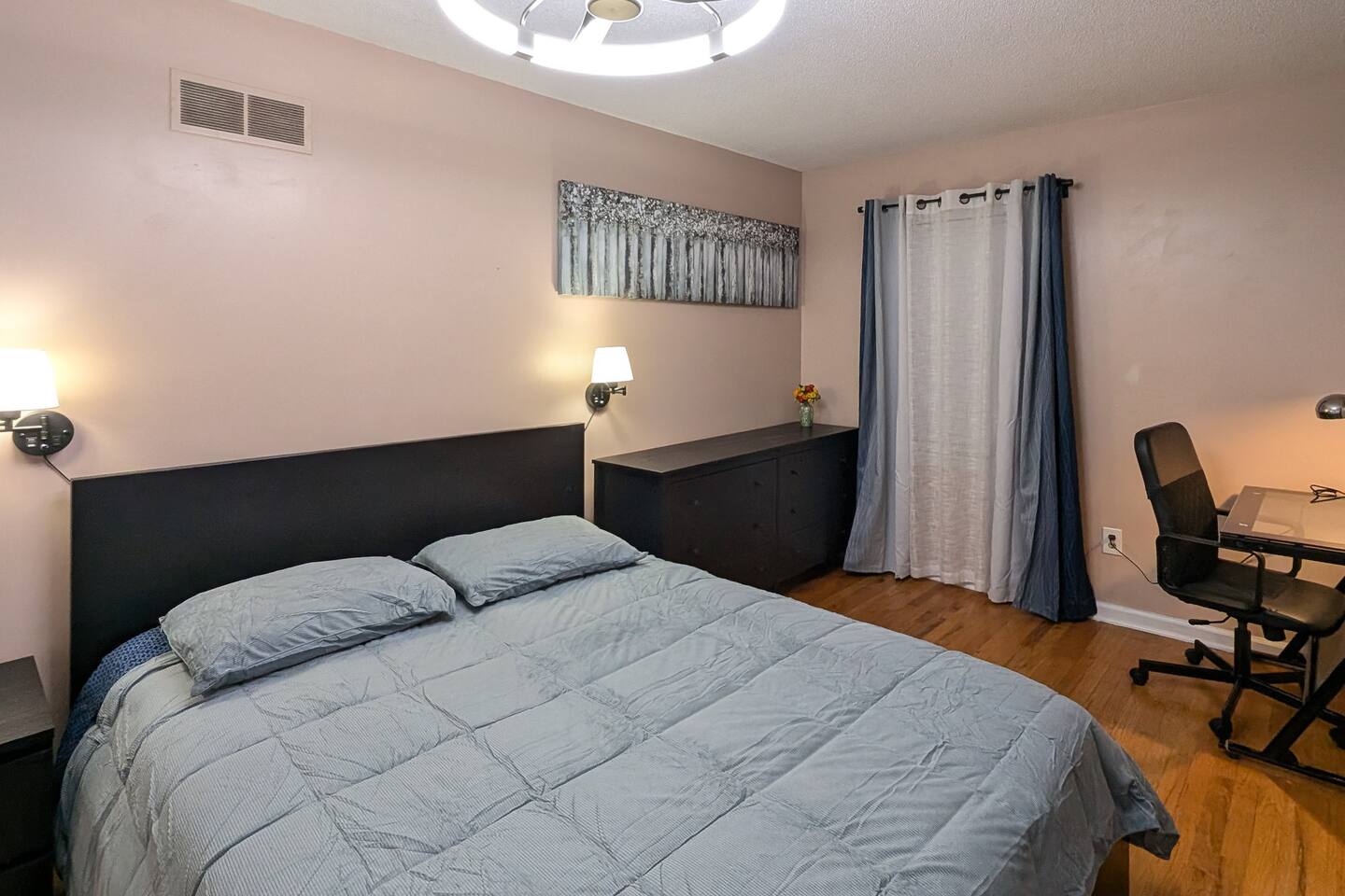 We've taken extra care with the small details so your stay is convenient, relaxing & special. Our 1600 sq.ft single family house features 4 Bedrooms and 2.5 Bathrooms, two car garage and a fenced in backyard. Bedrooms: - 2 King Beds - 2 Queen Beds - 3 sofa beds Bathrooms - Full bathroom with shower in the hall - Second Bathroom off the Master bedroom - Half-bathroom downstairs next to the laundry room Kitchen - Furnished kitchen - Basic cooking kitchenware/ plates/ cups/ utensils/ etc. - Fridge - Microwave - Dishwasher Parking - Two-car garage (open/close from inside) - Secure driveway - Super fast fiber Internet (1G download/upload) - Smart TVs with your favorite streaming channels Other details - In-house Laundry (Washer & Dryer)