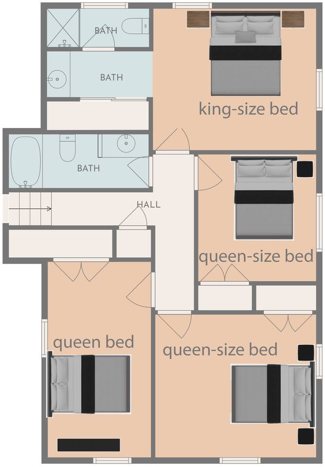 The entire single family house in the heart of Overland Park! Great choice for big groups, families, friends or colleagues. It has 4 bedrooms, king bed in master, 2.5 bathrooms, 2 living areas and a great backyard! Additional parking is available on the street or right across the street (public park). Don't wait, book this gem for your next family vacation! For large groups we have multiple properties in the same neighborhood.