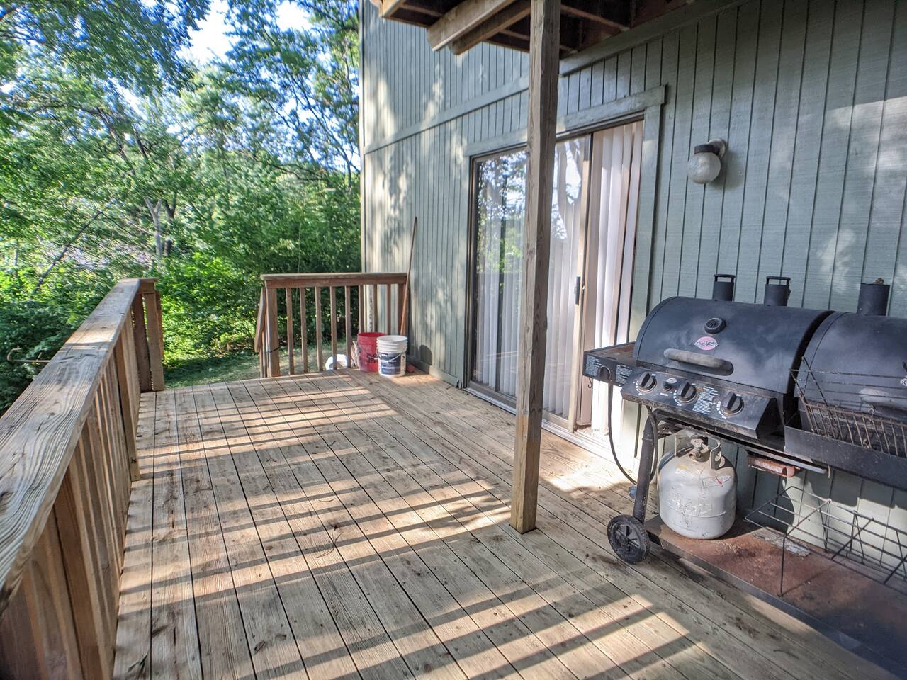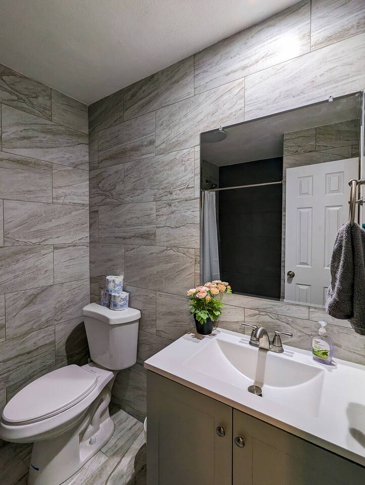 The house has three levels: upstairs there's a kitchen with an open dining area, all three bedrooms and the full bathroom. Master bedroom has a king bed, other bedroom has two twins and the third bedroom has queen size bed. On the main level there is a large living room and downstairs there's smaller living room and the laundry room with half-bathroom and exit to the garage and deck. On the deck there's an outdoor set with 4 chairs and a gas grill. All three couches in the living rooms are convertible into flat beds (linens are provided) Please be aware that the max capacity of 12 assumes that people would share king/queen beds and sofa beds. For more comfortable stay (each person in a bed) this house is suitable for 4-6 people. You can park up to 2 cars on the driveway and one more on the street but please do not block our neighbors.